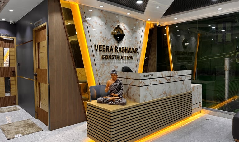 This is a project VEERA RAGHAVAR CONSTRUCTIONS builder office designed surapet redhills Chennai Tamil Nadu OPENING DATE 14/09/2025